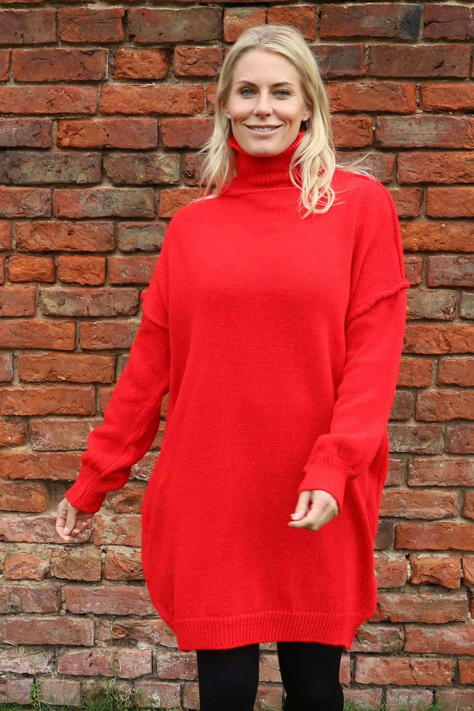 Bridie Polo Neck Knitted Tunic Red