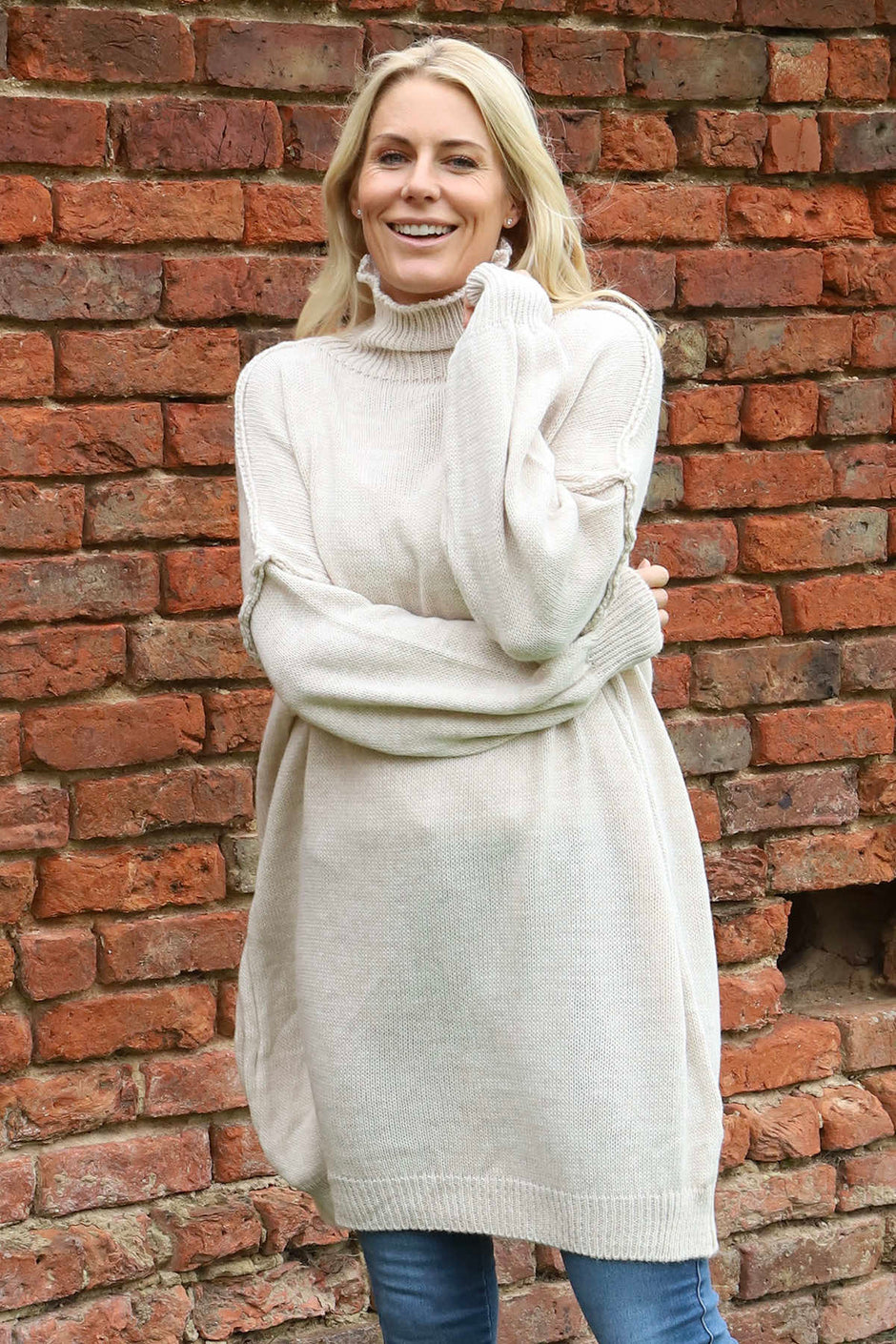 Bridie Polo Neck Knitted Tunic Stone
