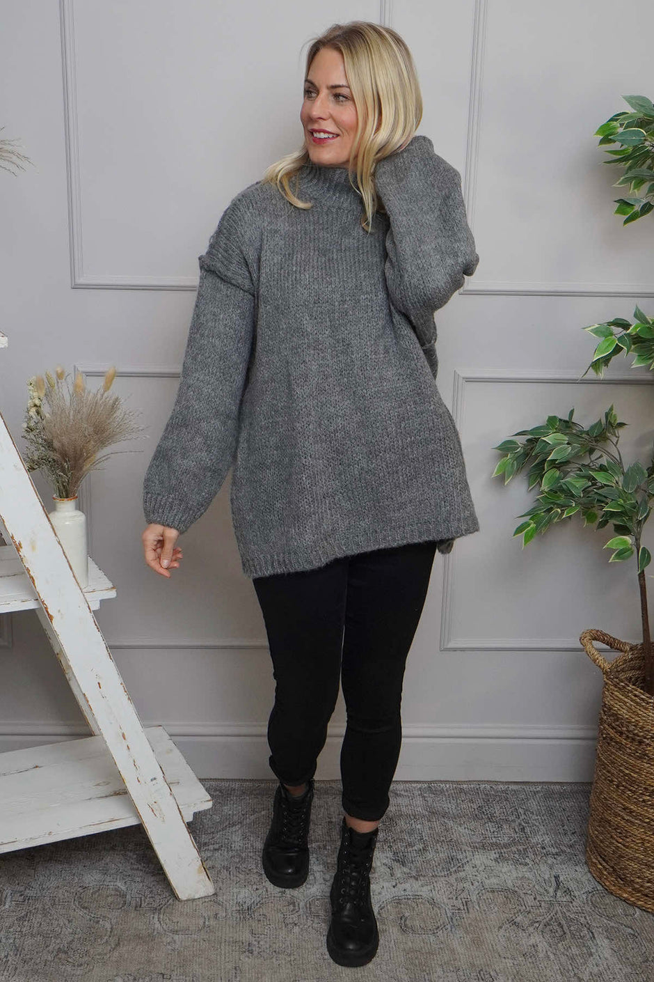 Romilly Polo Neck Knitted Jumper Mid Grey
