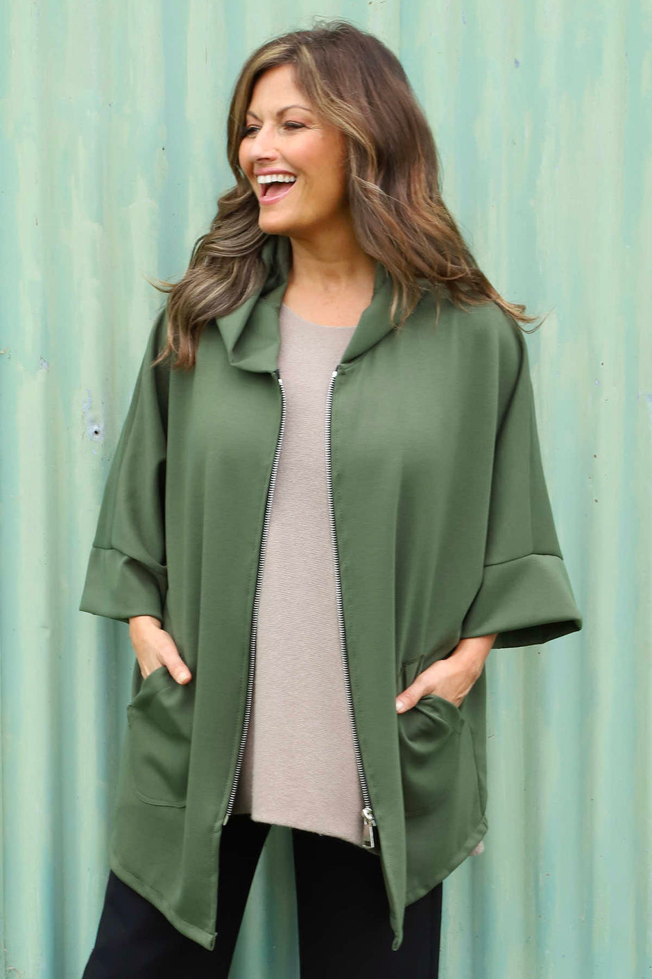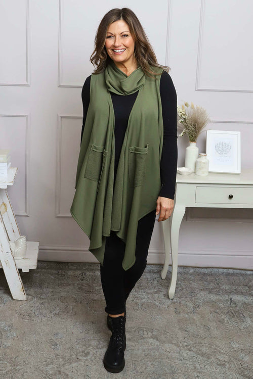 Orpha Cowl Neck Cotton Waistcoat Khaki
