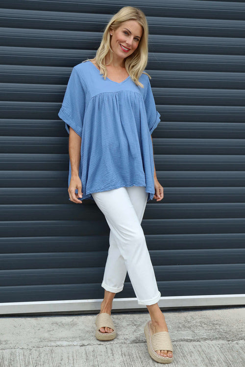 Ravello Crinkle Cotton Top Blue