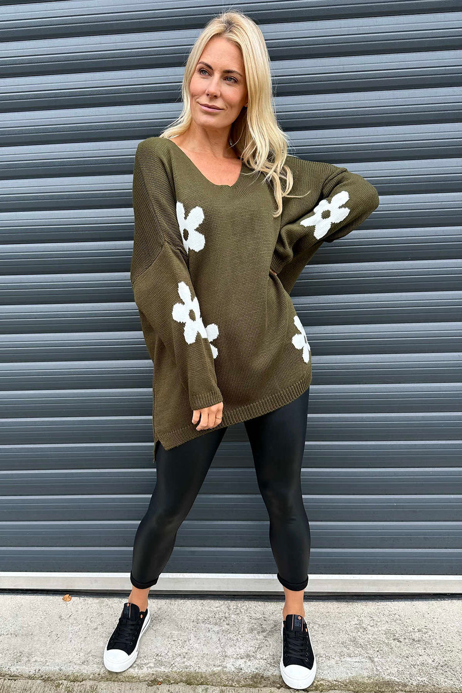 Valerie Flower Knitted Jumper Khaki