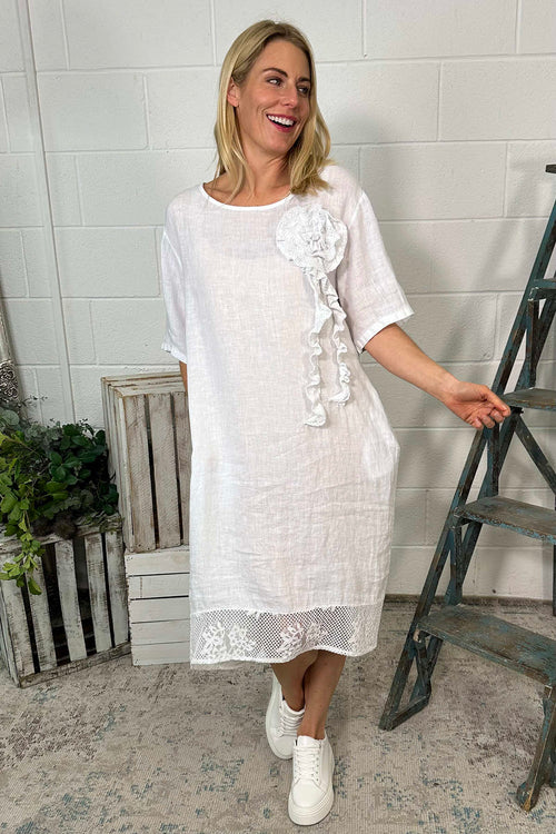 Lennon Rosette Linen Dress White