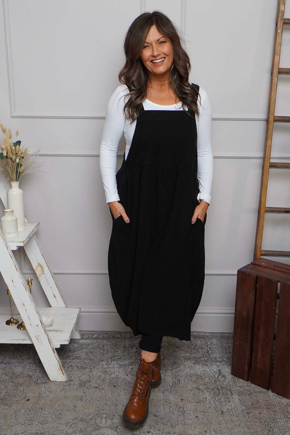 Meredith Needlecord Pinafore Black