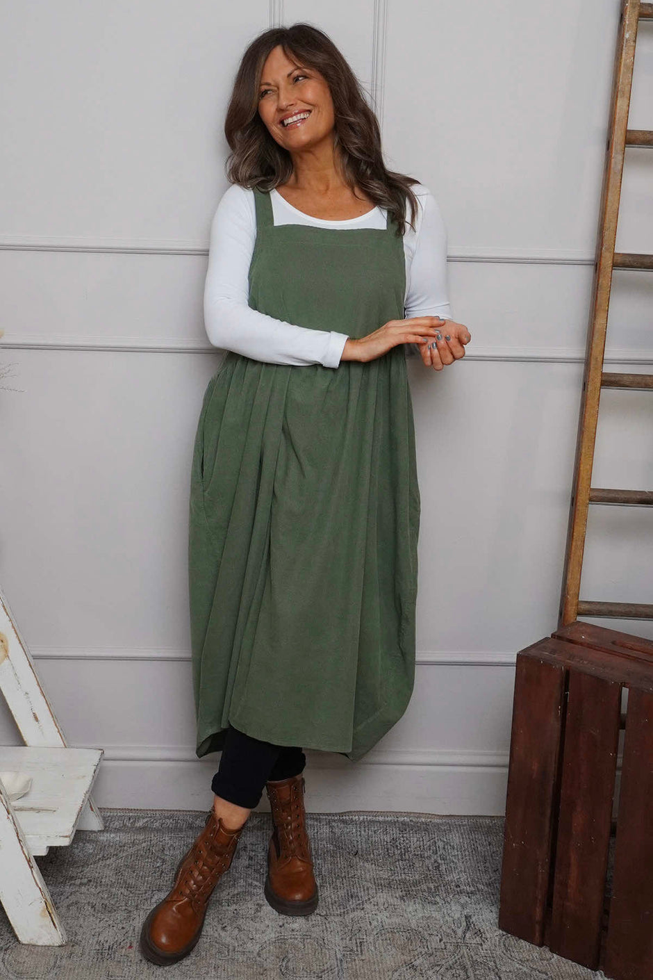 Meredith Needlecord Pinafore Red