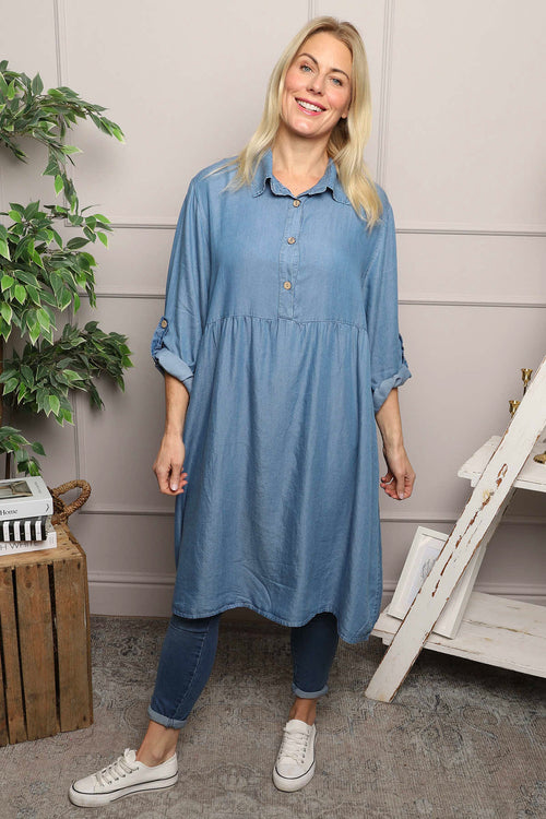 Bronwyn Denim Button Tunic Mid Denim