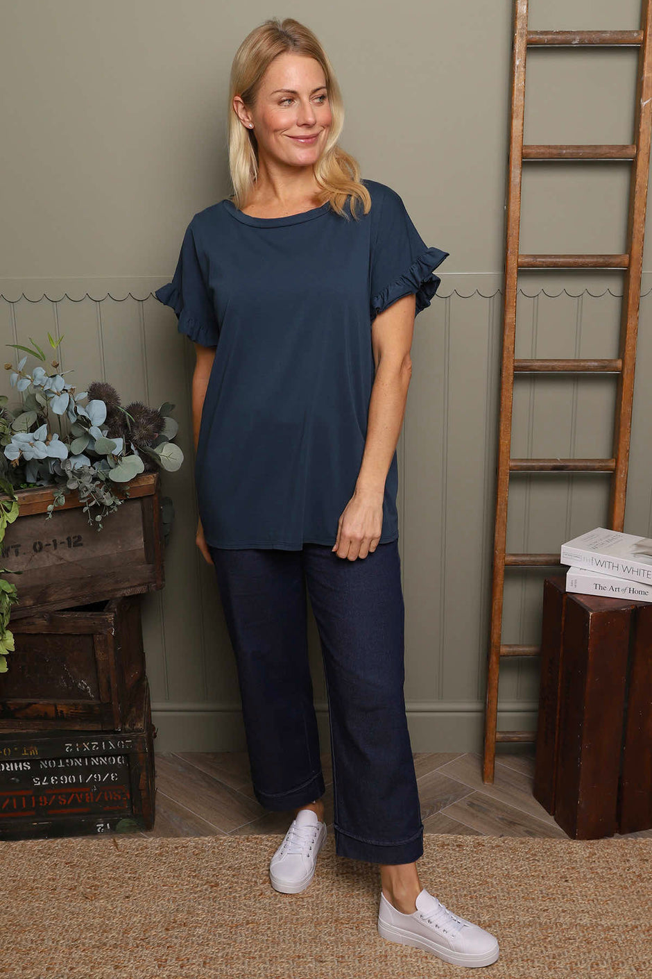 Summerleaze Frill Sleeve Cotton Top Light Blue