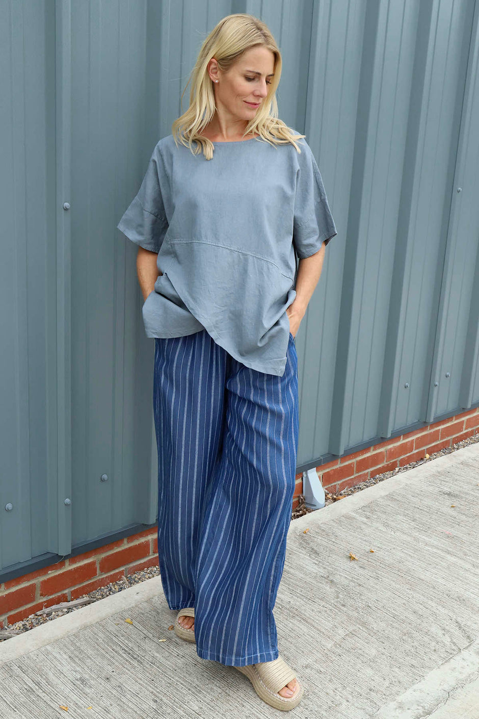 Summerleaze Frill Sleeve Cotton Top Light Blue