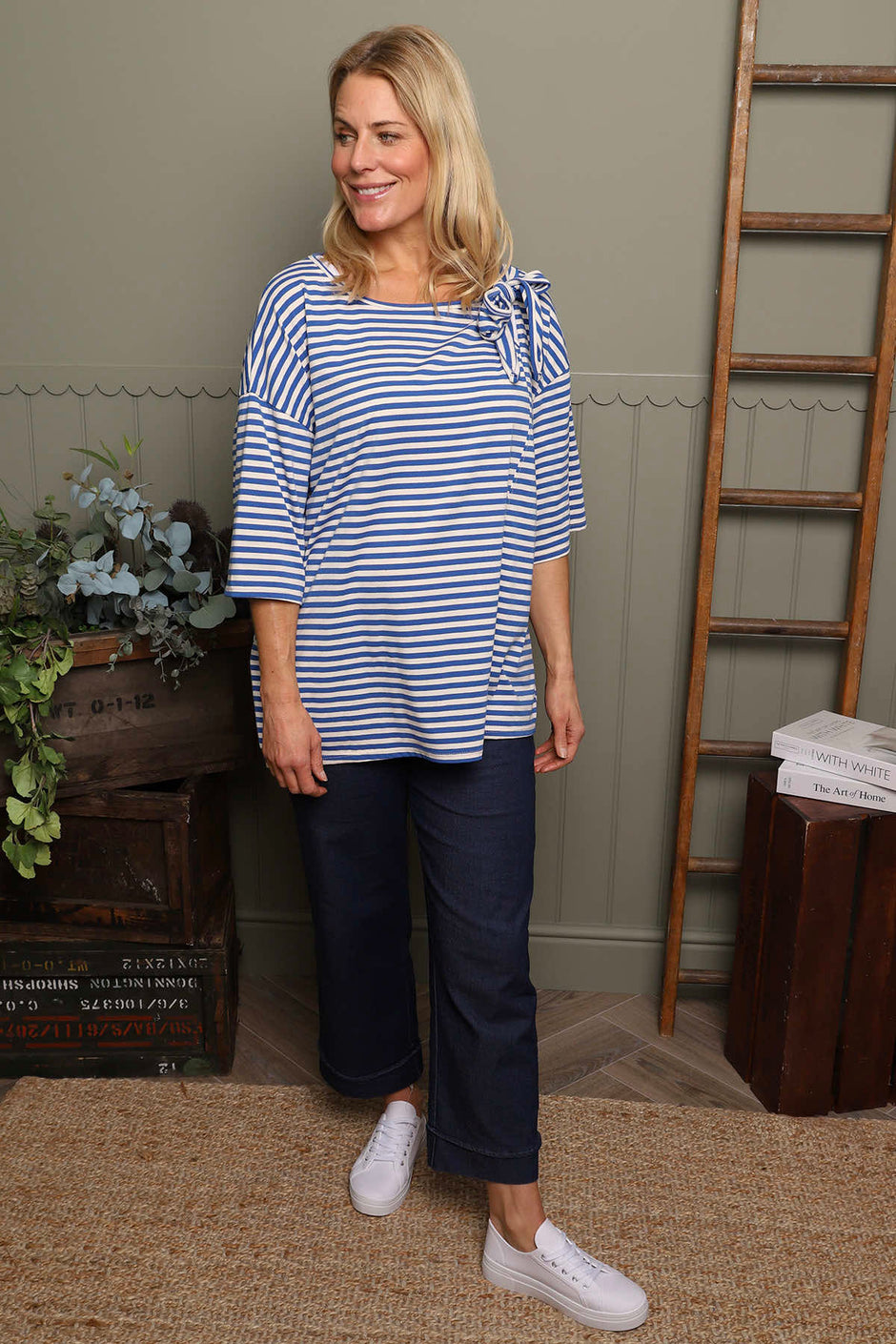 Trixie Stripe Tie Cotton Top Cobalt
