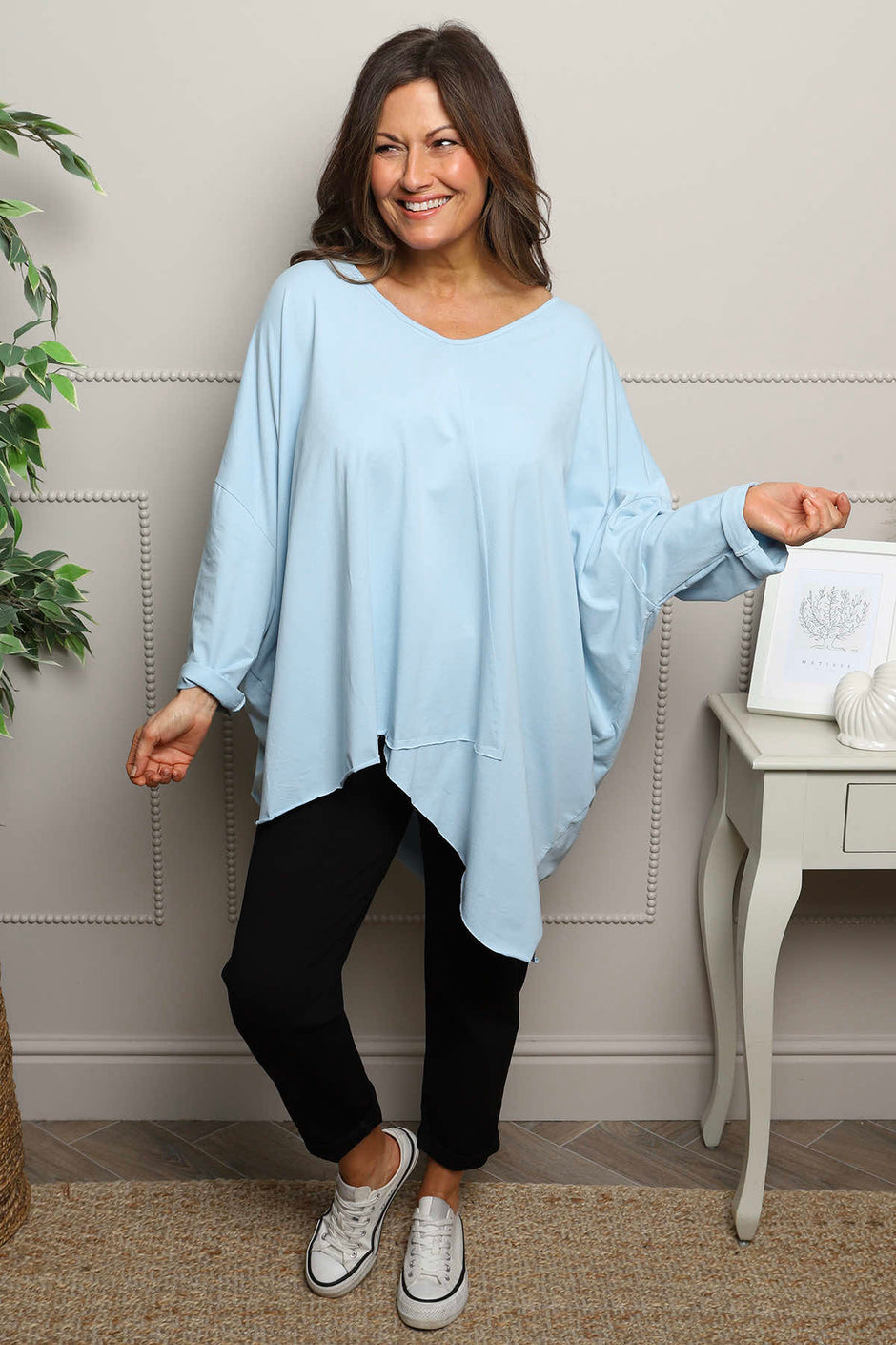 Jodie Dip Side Cotton Top Light Blue