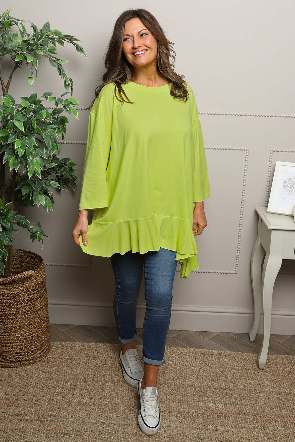 Jodie Dip Side Cotton Top Lime