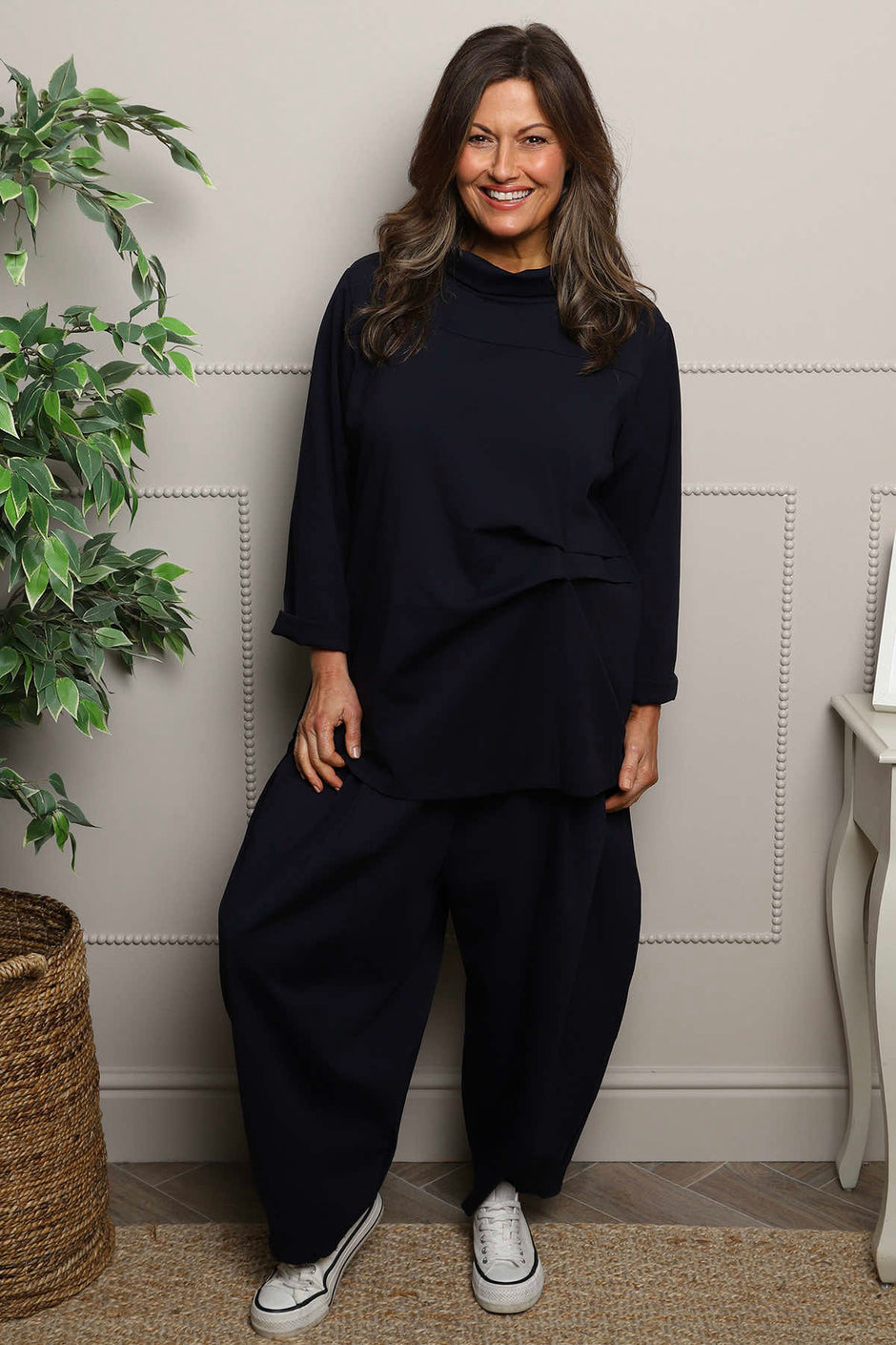 Beulah Cowl Neck Cotton Top Navy