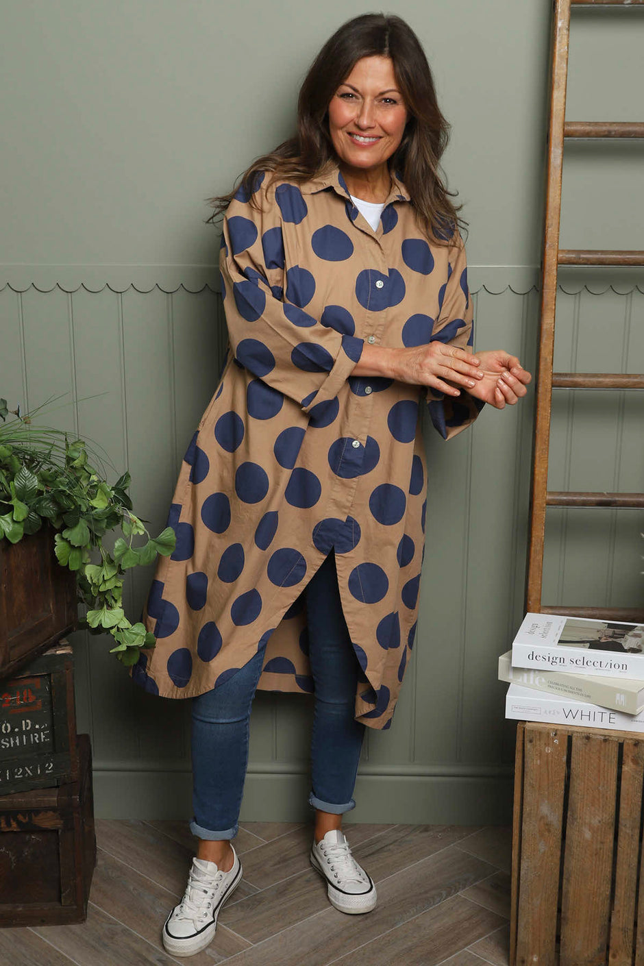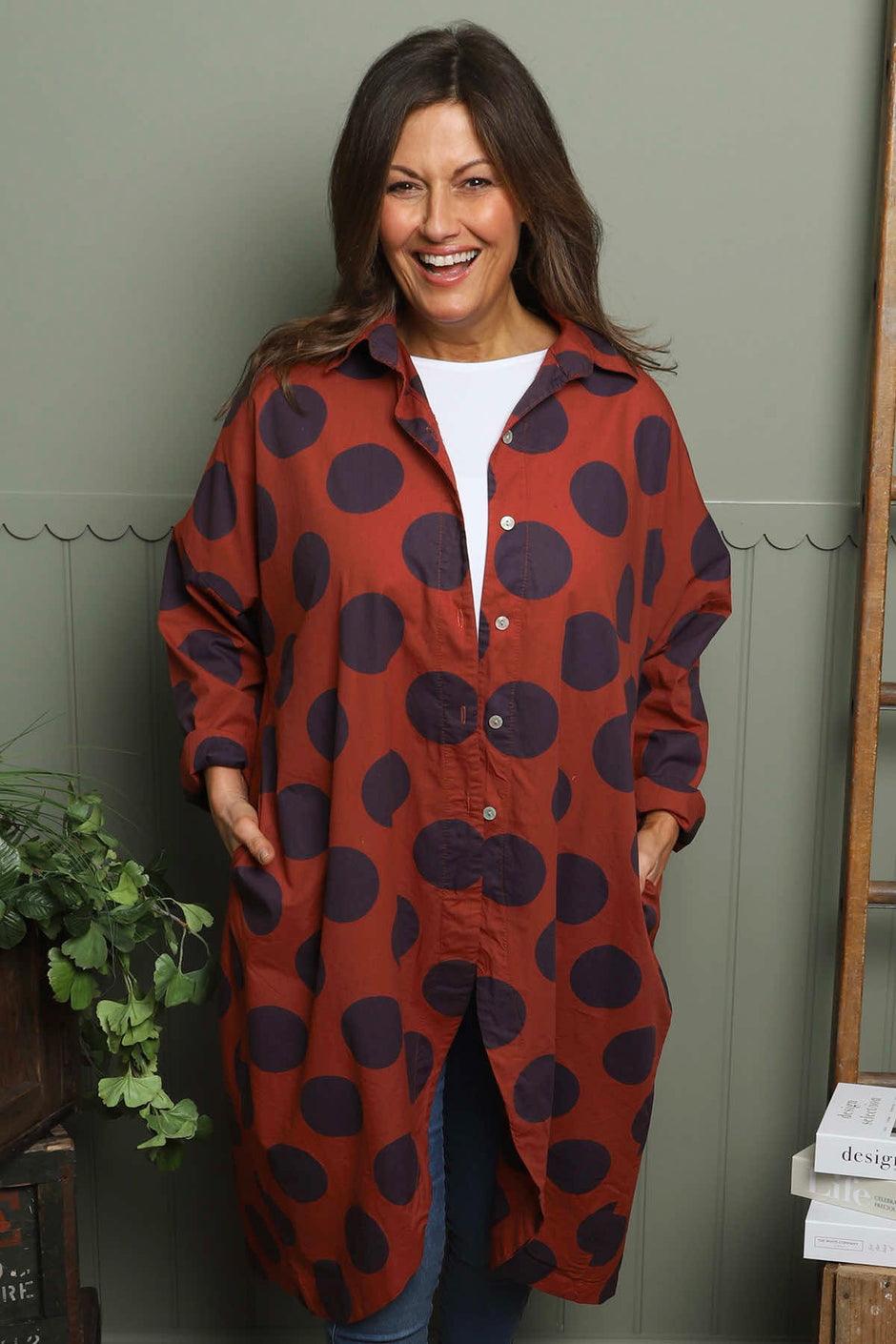 Lita Spot Print Cotton Shirt Burnt Orange