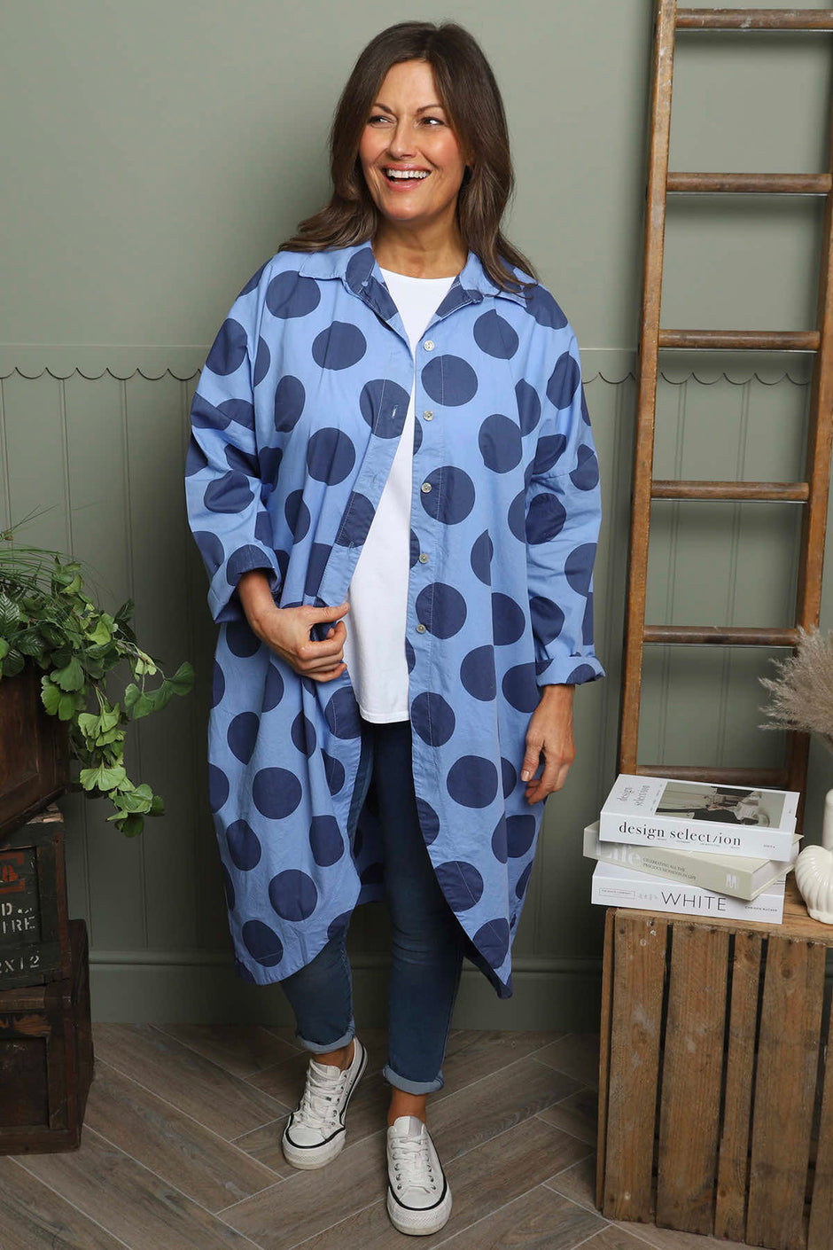 Lita Spot Print Cotton Shirt Blue