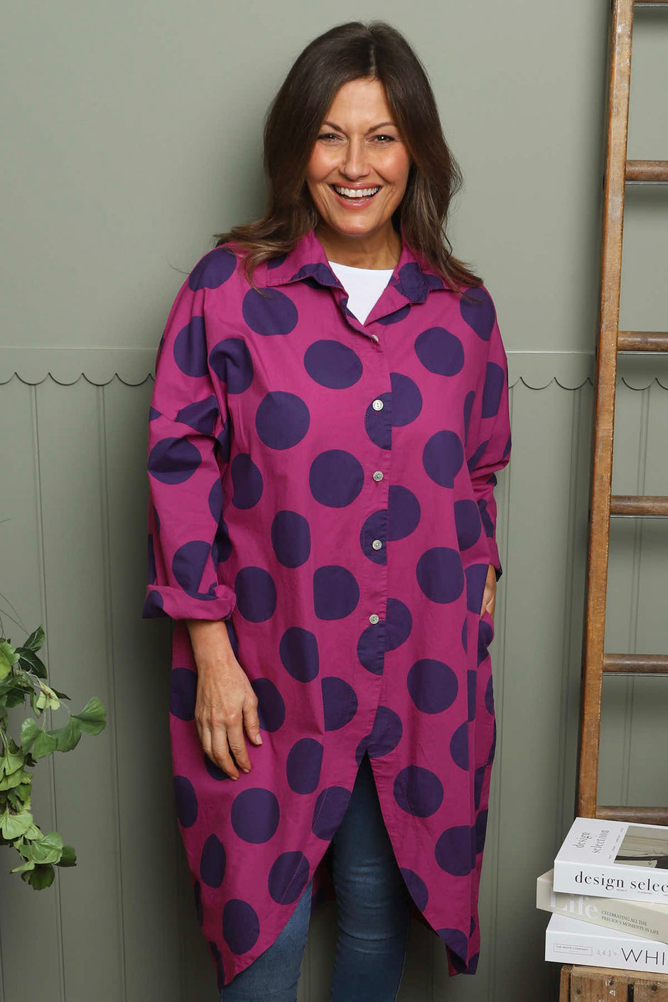 Lita Spot Print Cotton Shirt Berry