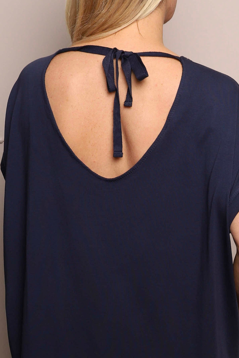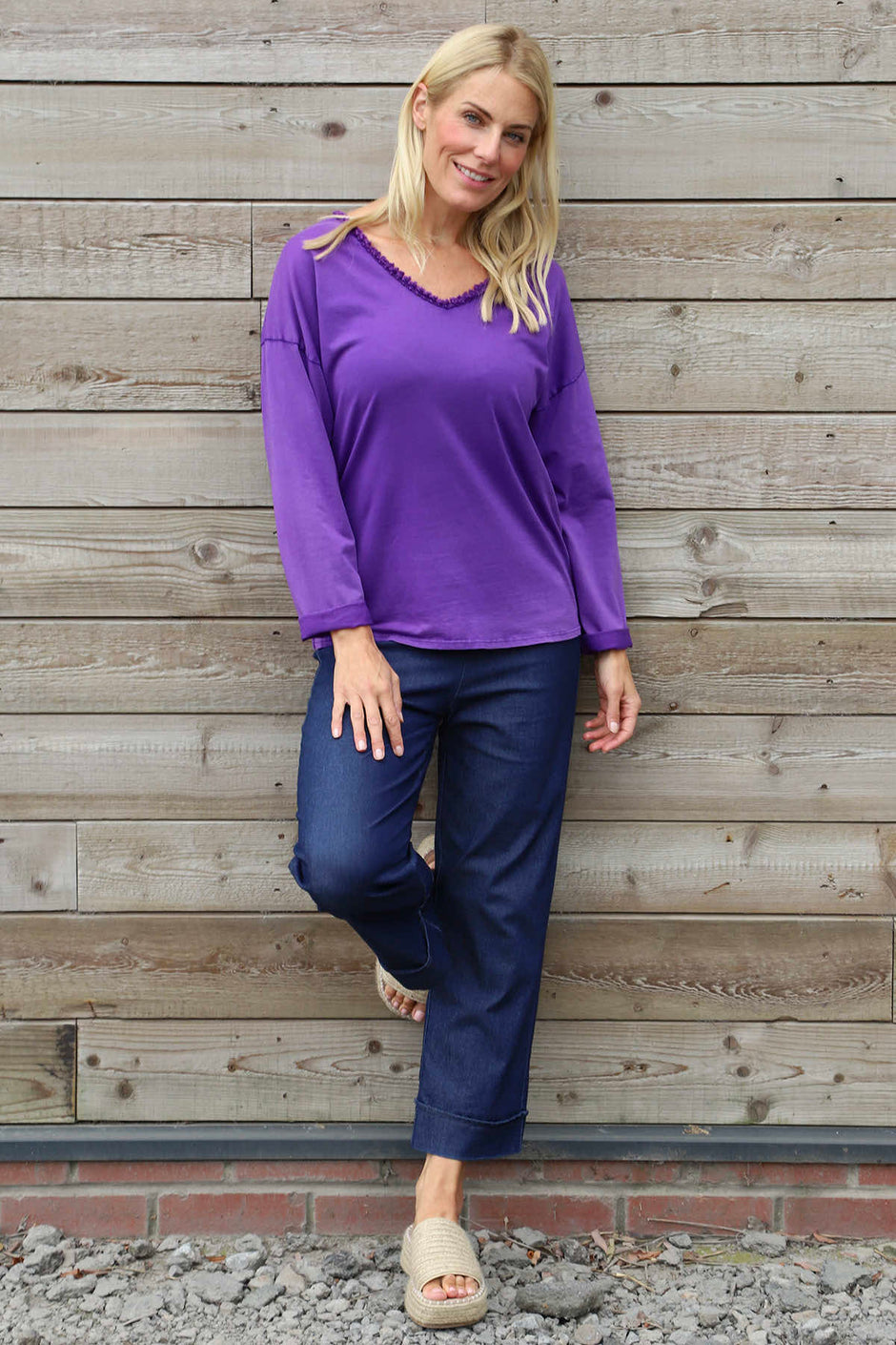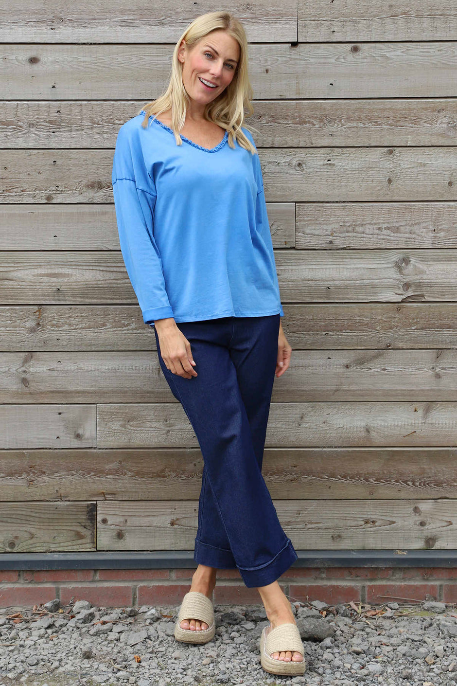 Natasha Crochet Shoulder Linen Top Royal Blue