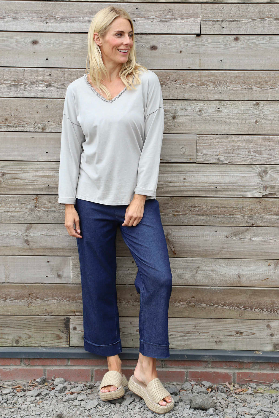 Lyssa Cowl Neck Stripe Top Marl Grey