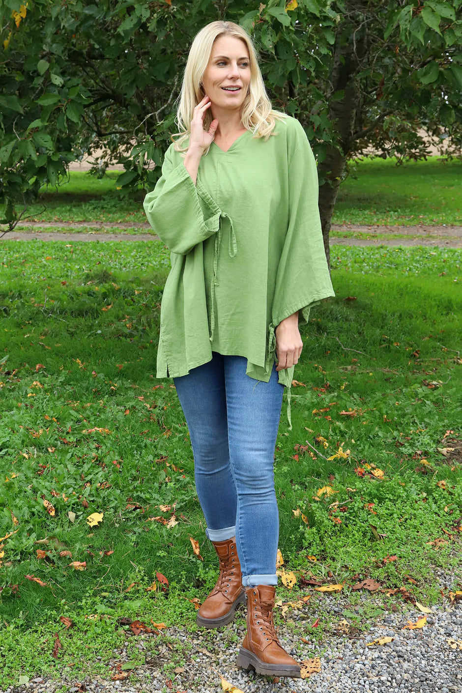 Natasha Crochet Shoulder Linen Top Dark Khaki