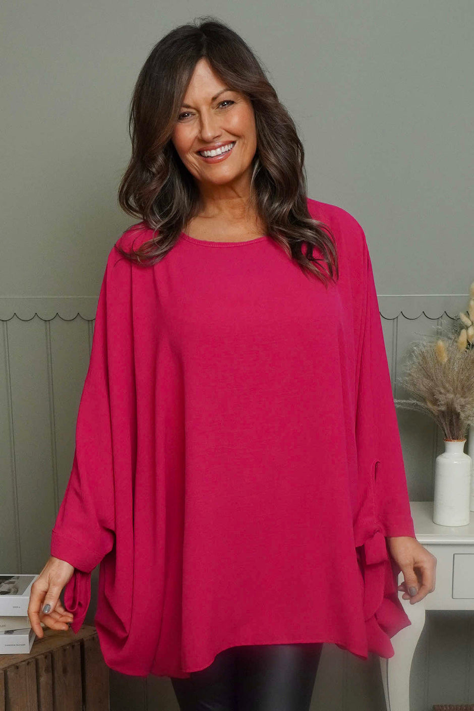 Anette Tie Sleeve Top Fuchsia