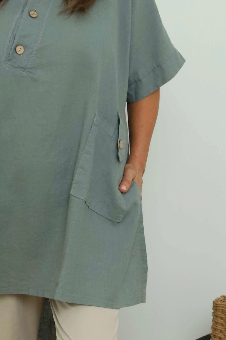 Bridget Button Linen Top Berry
