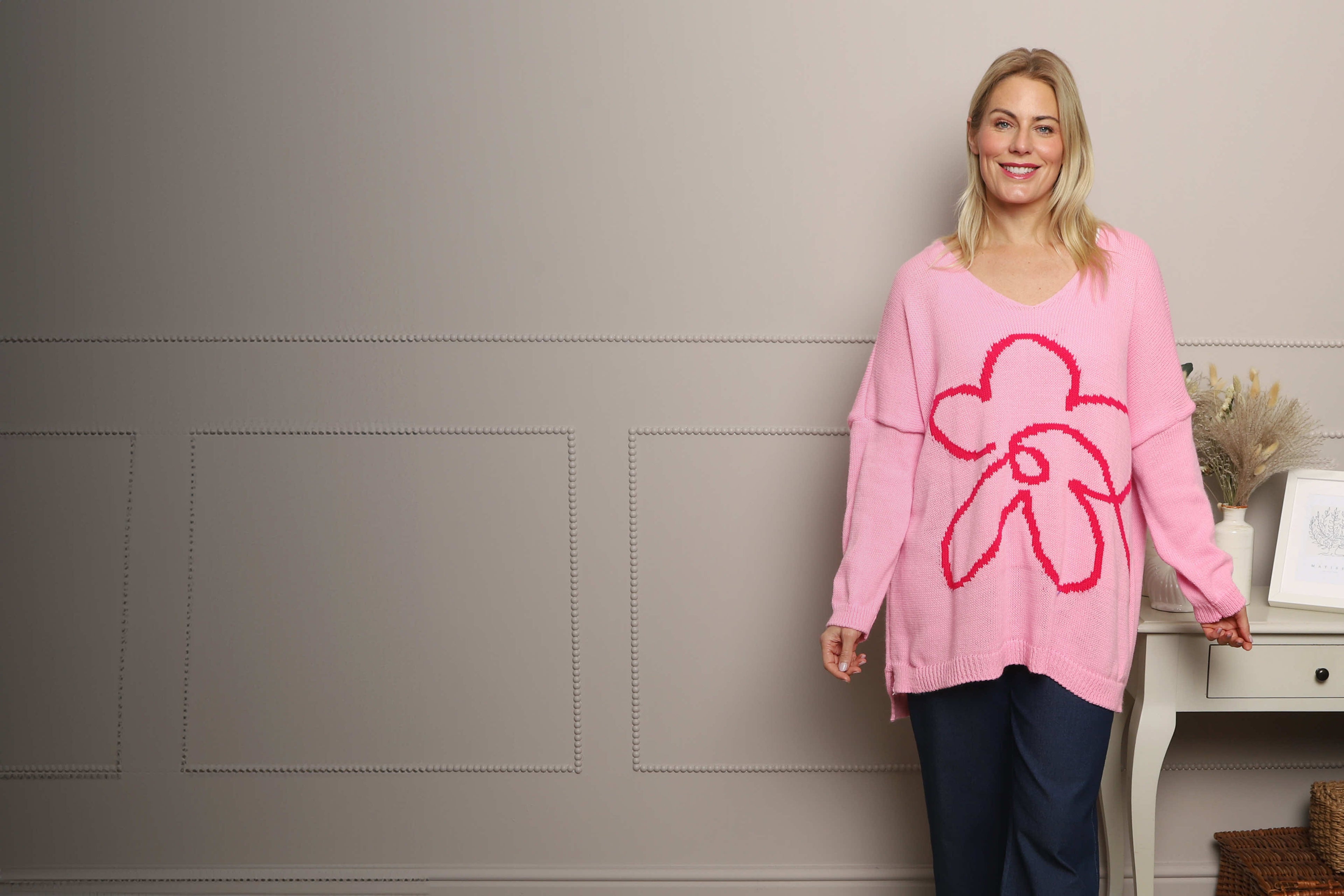 Roxanna Flower Knitted Jumper Light Blue