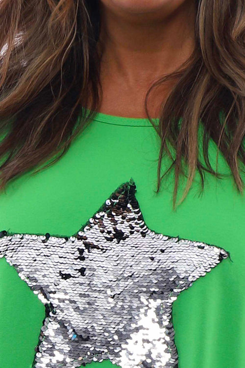 Selsey Sequin Star Cotton Top Green