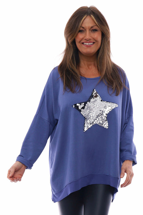 Selsey Sequin Star Cotton Top Indigo