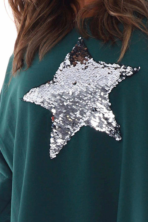Selsey Sequin Star Cotton Top Bottle Green