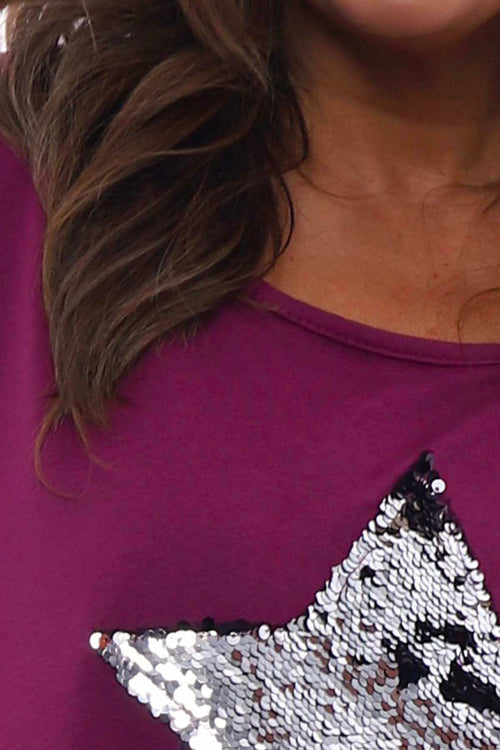 Selsey Sequin Star Cotton Top Berry