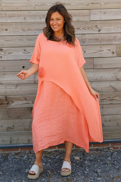 Lulworth Layered Rosette Linen Dress Orange