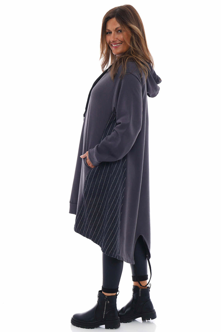 Anya Stripe Hooded Cotton Tunic Mid Grey