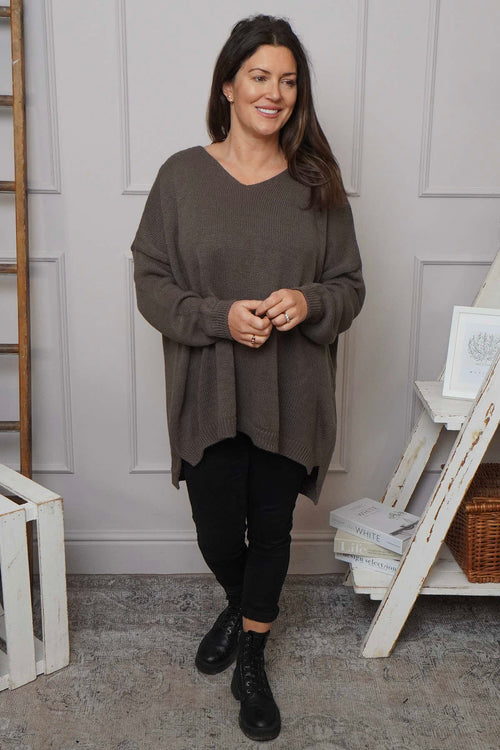 New InAvailable to Pre-OrderMade in Italy Made in ItalyJosephine V-Neck Knitted Jumper Dark Mocha