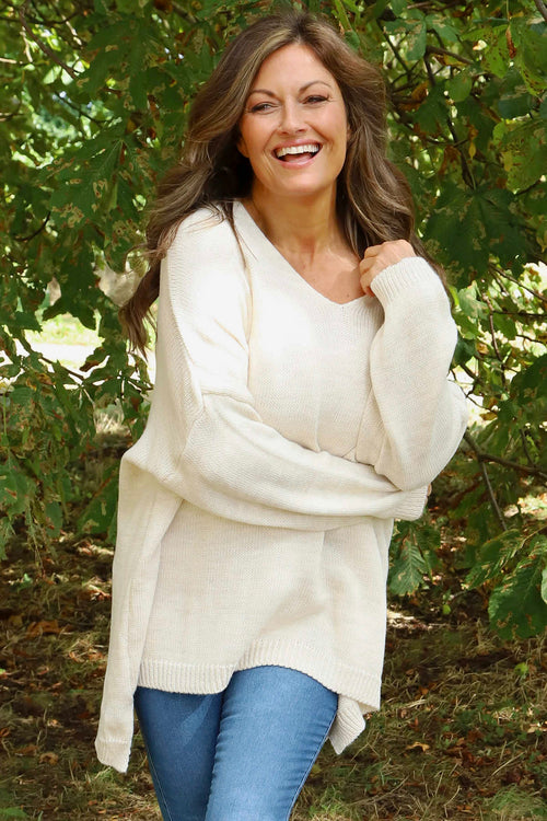 New InAvailable to Pre-OrderMade in Italy Made in ItalyJosephine V-Neck Knitted Jumper Stone