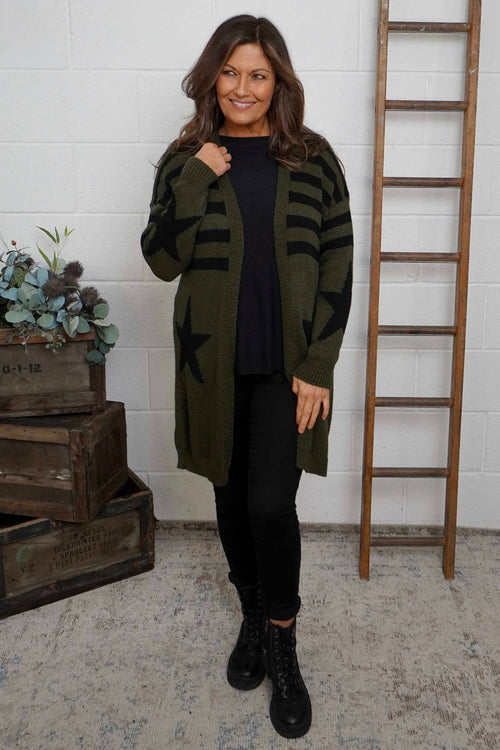 Kennedy Stripe Knitted Cardigan Khaki