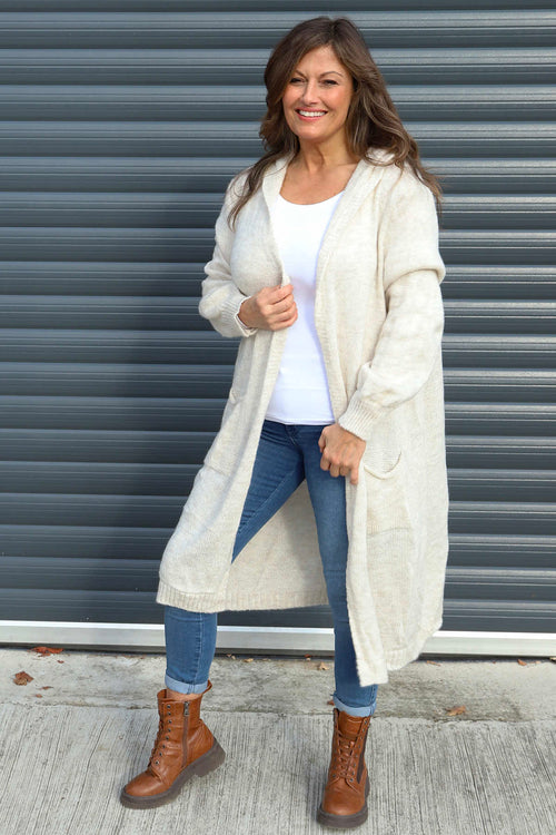 Nousha Hooded Knitted Cardigan Stone