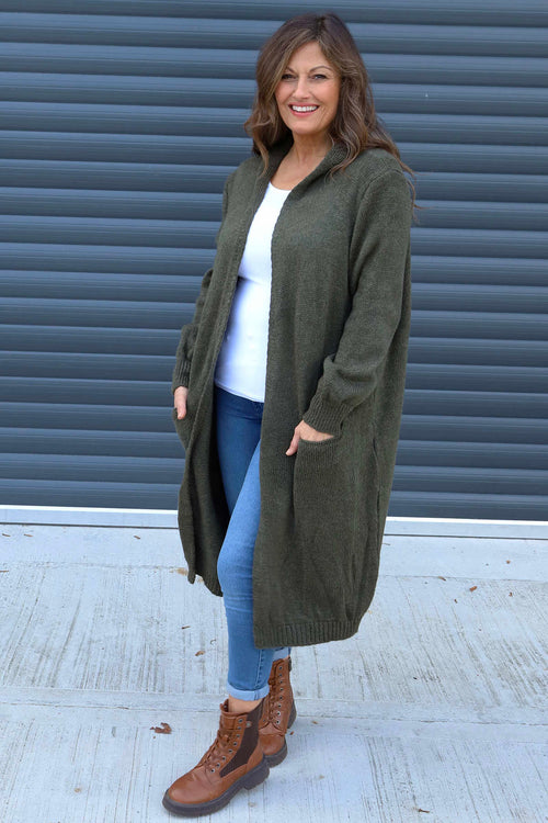 Nousha Hooded Knitted Cardigan Khaki