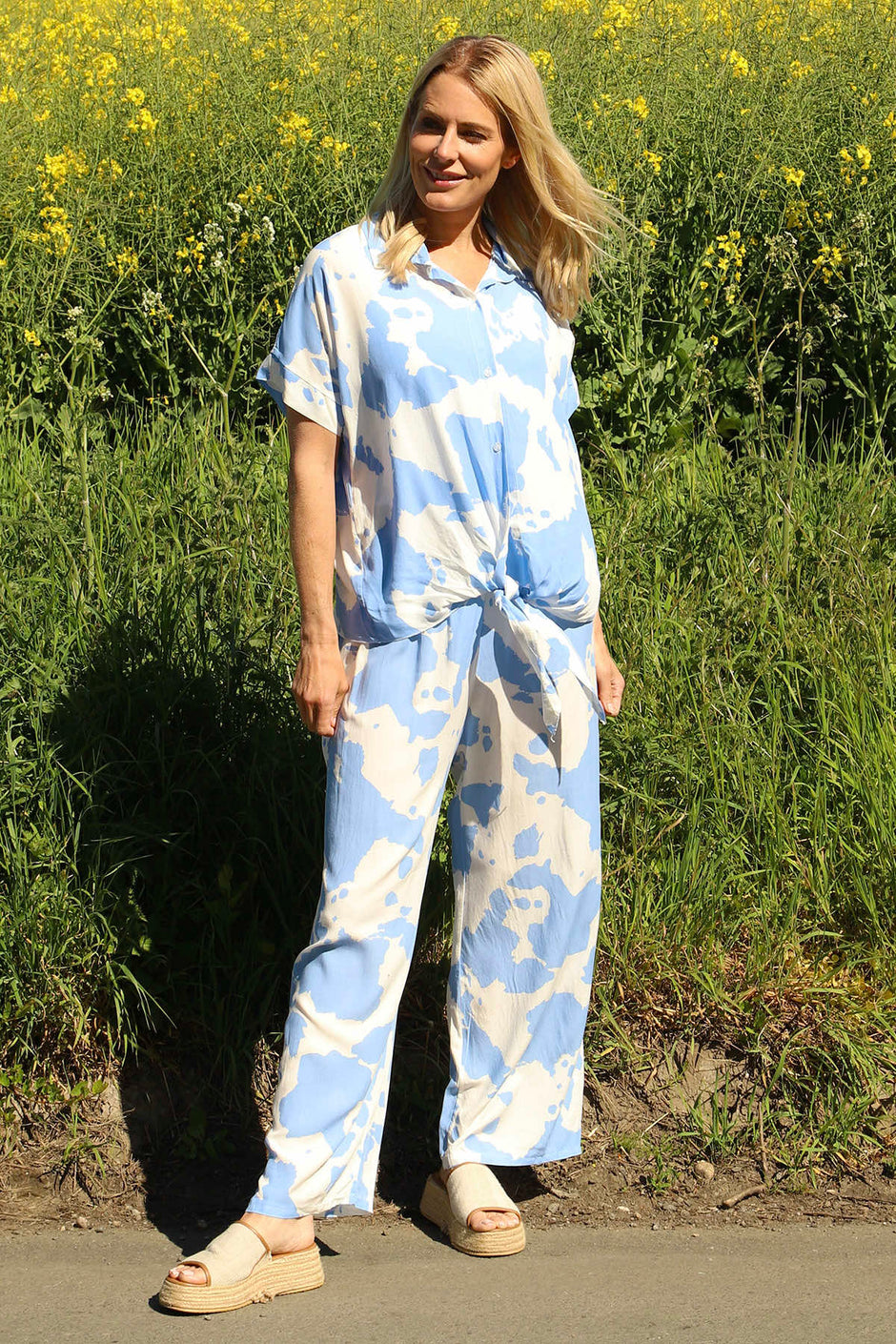 Daphne Paisley Wide Leg Trousers Powder Blue