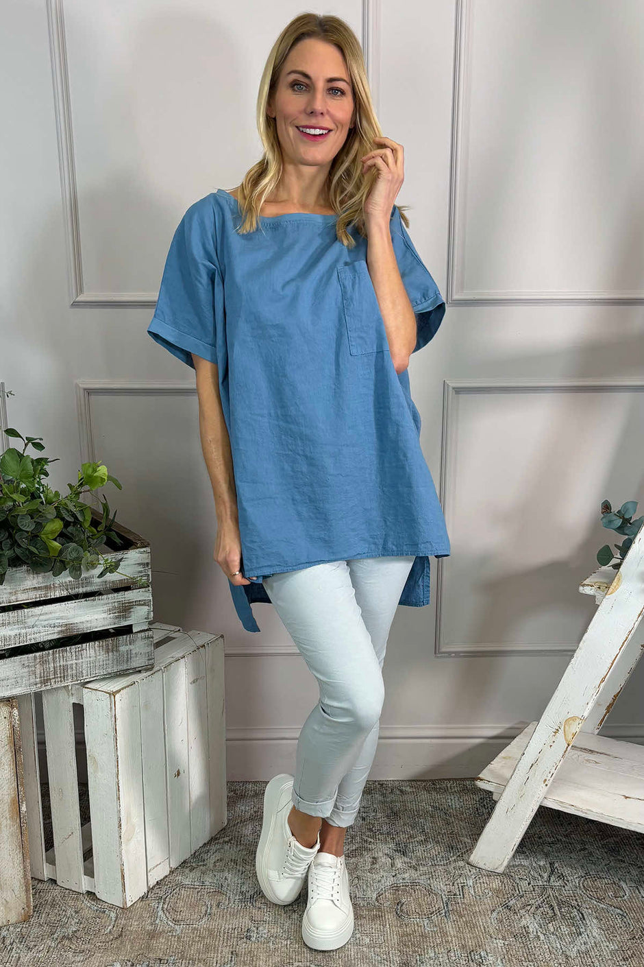 Kinsley Washed V-Neck Cotton Top Cobalt