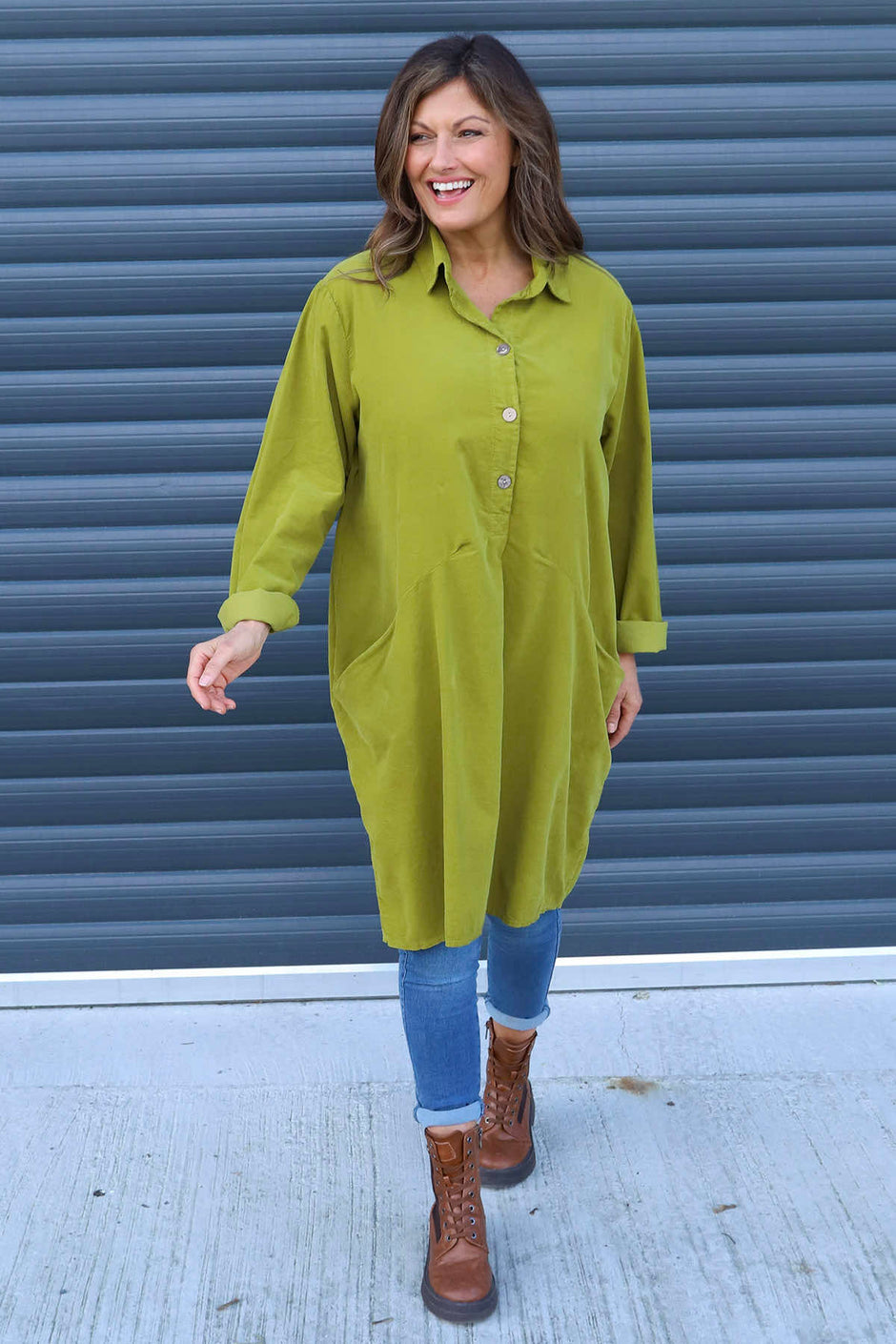 Lizzie Needlecord Button Tunic Cocoa