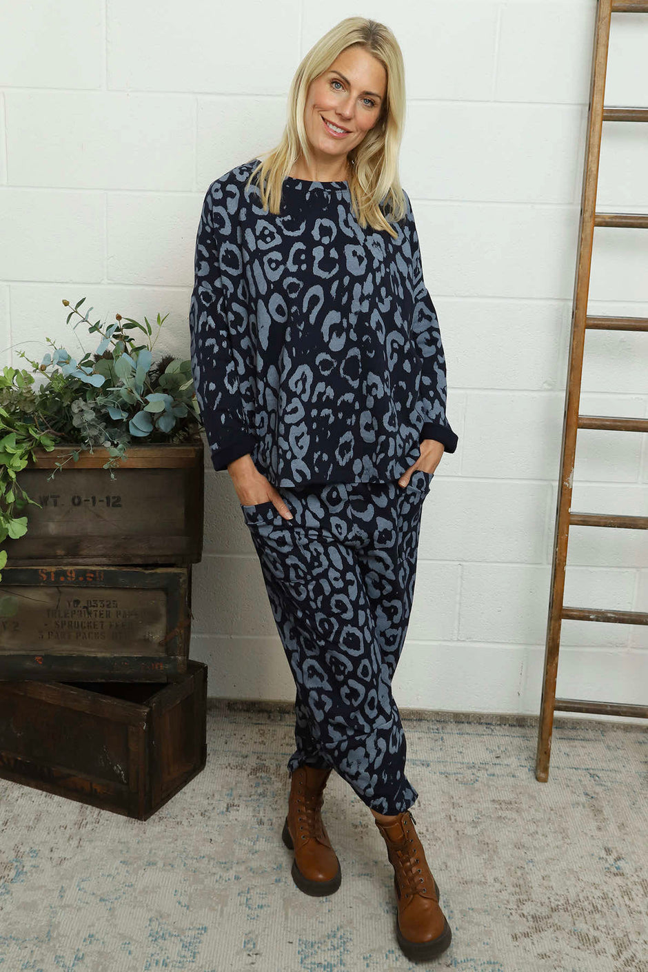 Phillida Leopard Trousers Navy