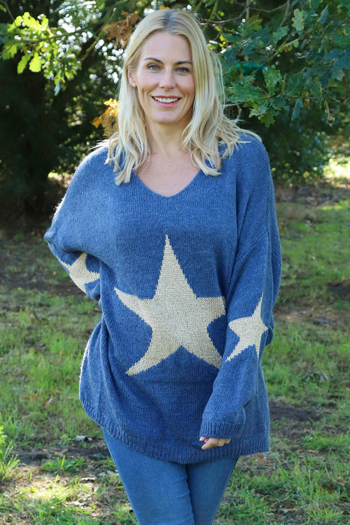 New InAvailable to Pre-OrderMade in Italy Made in ItalyPaige Star Knitted Jumper Blue