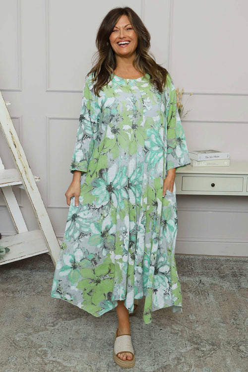 • Sienna Button Linen Dress Charcoal