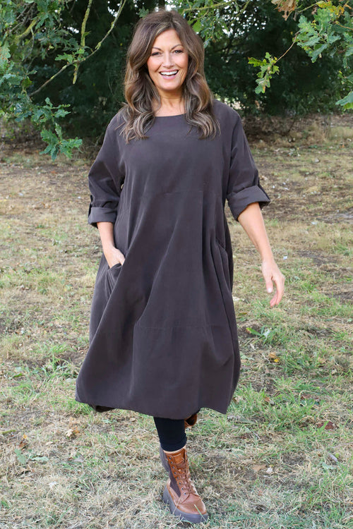Available to Pre-OrderMade in Italy Made in ItalyPenelope Pocket Needlecord Dress Cocoa