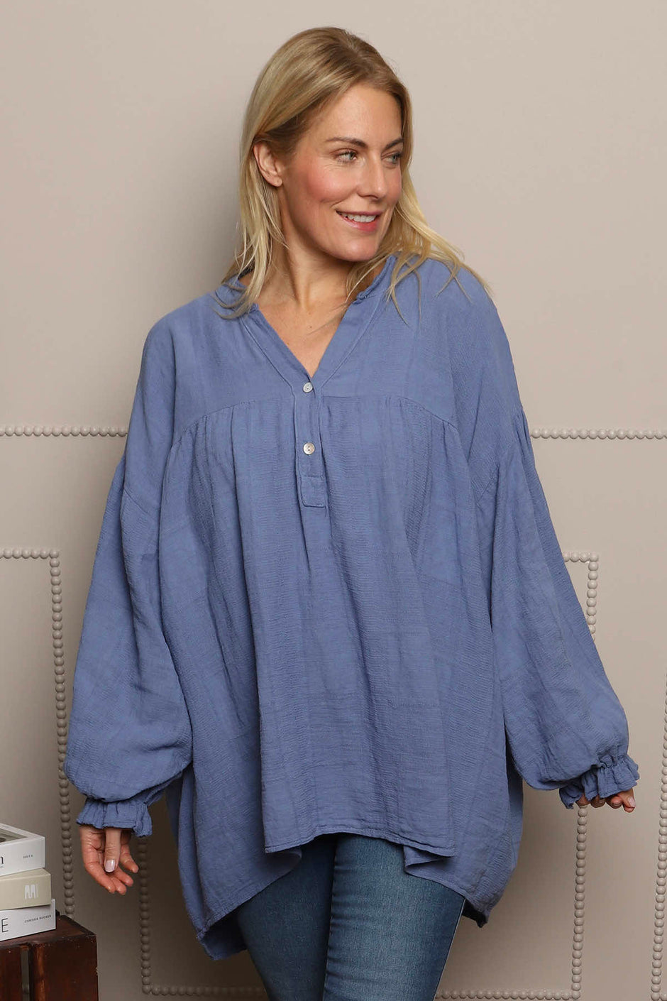 Bronwyn Denim Button Tunic Mid Denim