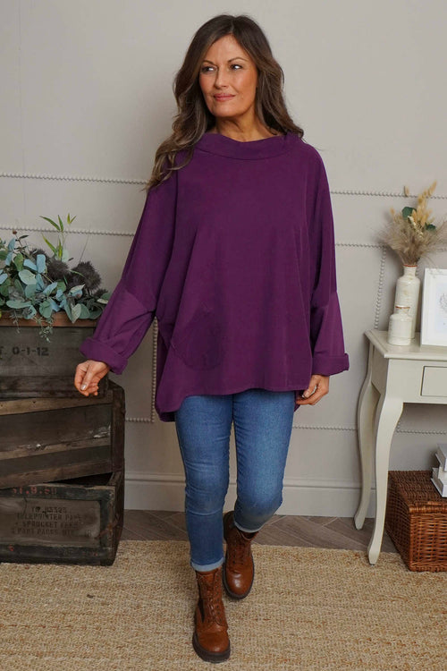 Rhianna Cowl Needlecord Top Purple