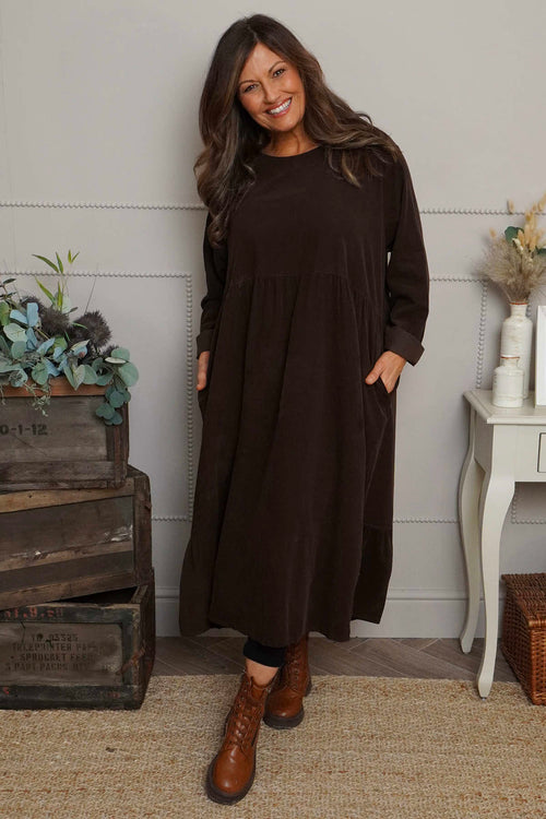 Sheena Needlecord Dress Cocoa