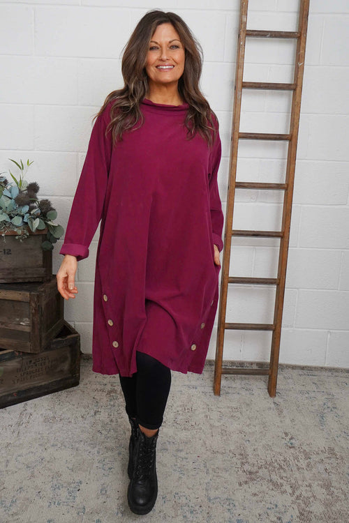 New InLast 3Made in Italy Made in ItalyIzzy Button Detail Needlecord Dress Wine