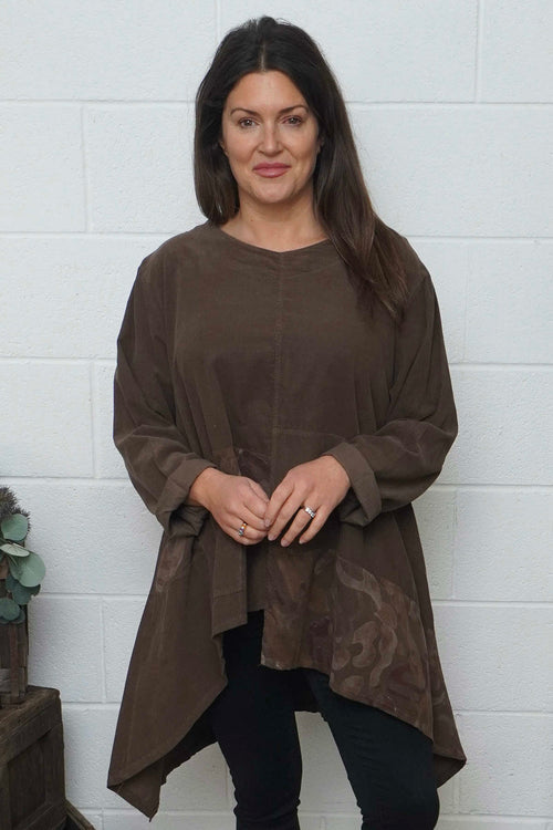 New InLast 2Made in Italy Made in ItalyBerenice Print Detail Needlecord Top Burnt Orange