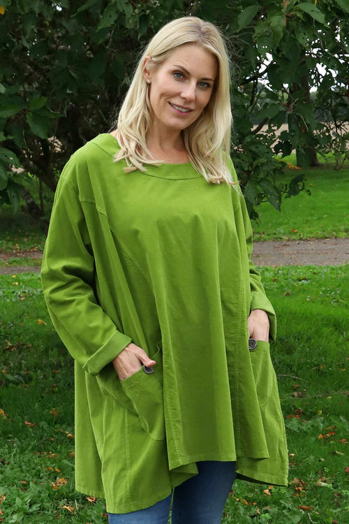 New InFinal OneMade in Italy Made in ItalyBerenice Print Detail Needlecord Top Olive