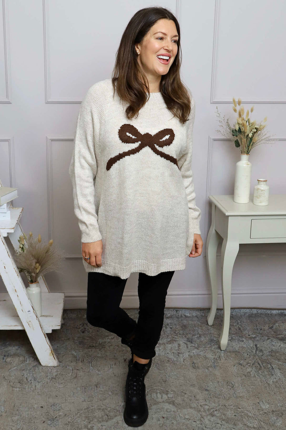 Shani Boucle Polo Knitted Jumper Light Khaki